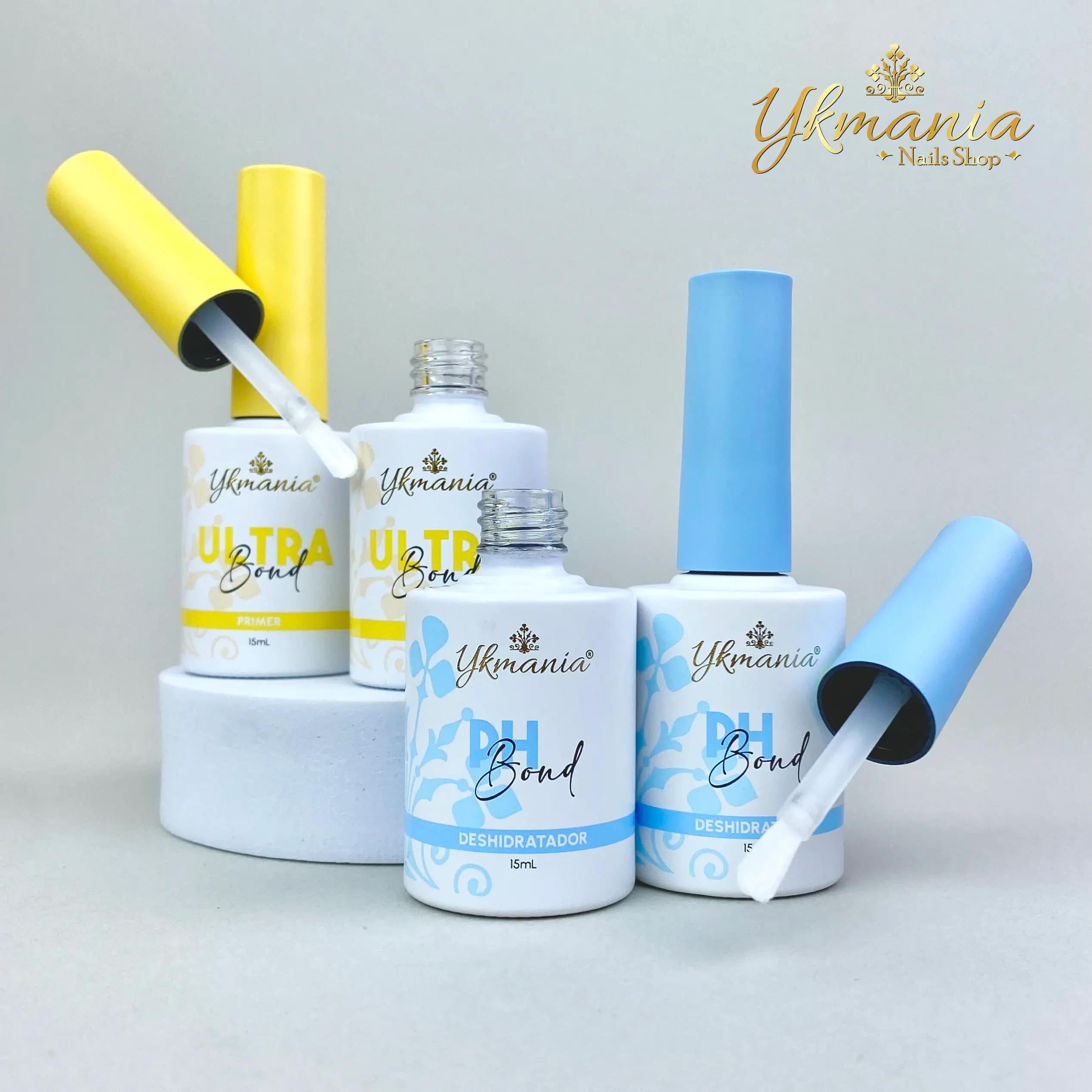 • PH BOND YKMANIA (paso 1) Ayuda a equilibrar el pH de la uña natural, preparándola para la aplicación de sistemas artificiales. Crea una superficie seca y libre de residuos para que el Ultra bond primer (paso 2) se adhieran mejor, previene el levantamiento del producto y mejorar la durabilidad.